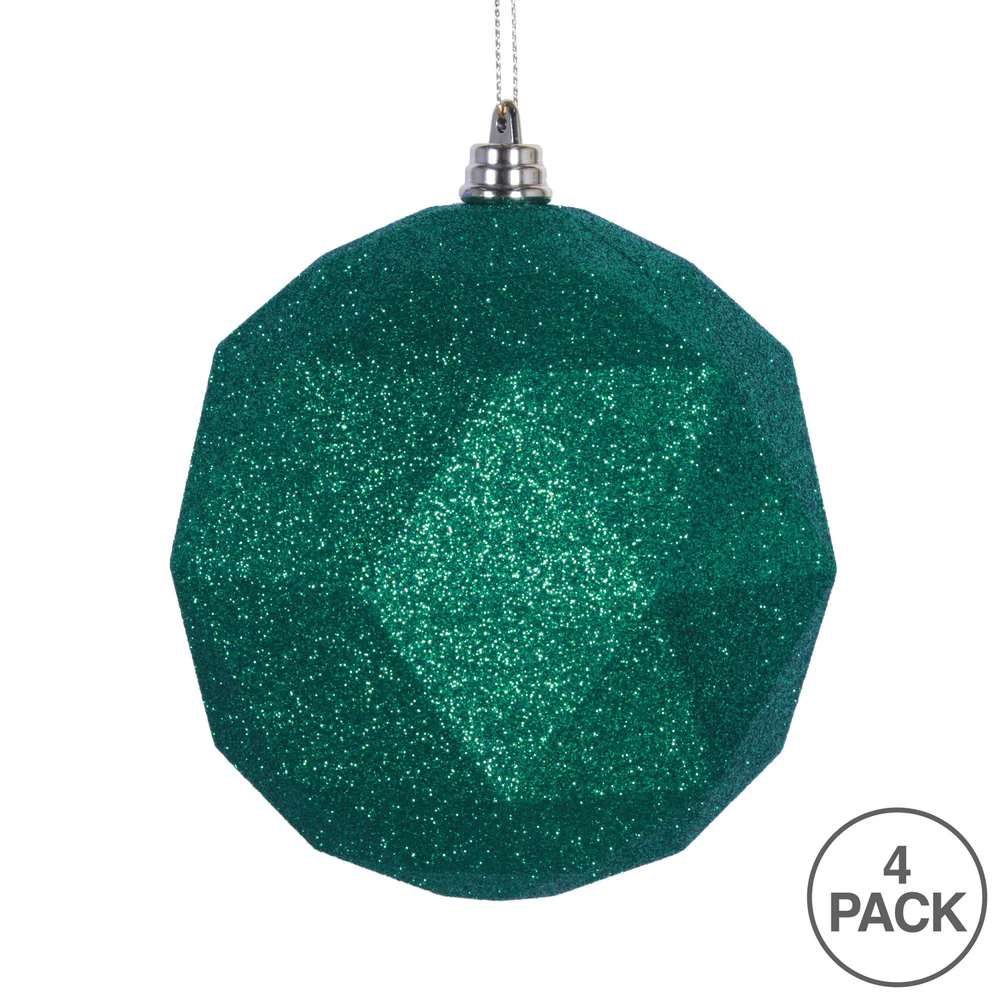 Vickerman 6" Green Glitter Geometric Ball Ornament 4 per bag