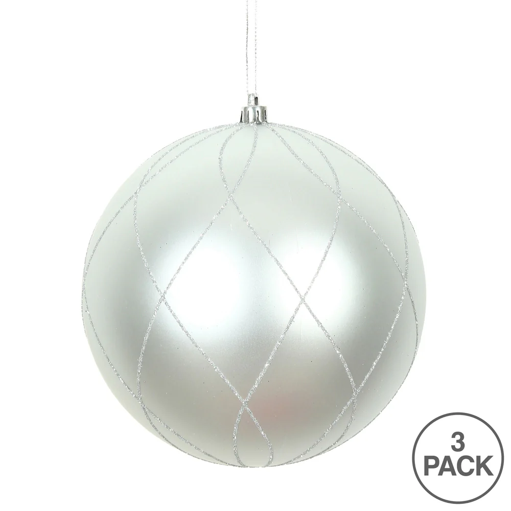 Vickerman 6" Silver Matte and Glitter Swirl Ball Ornament 3 per Box