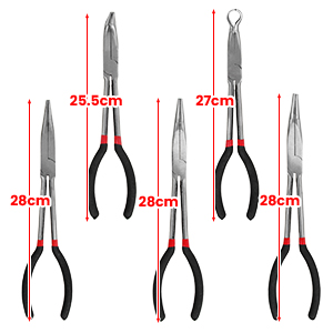 5tlg Lange Spitzzange Set, Zange Satz Spitzzange Telefonzange Rundnasenzange Auto Lang Zangensatz 11'/180mm