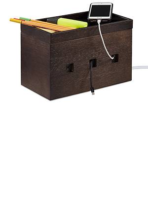 - Ordentlich: Dunkelbraune Kabelbox aus Bambus zum Verstecken der Steckdosenleiste - Kein Kabelgewirr