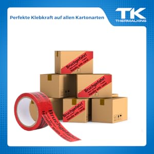 TK THERMALKING Klebeband - Packband - Paketband mit Hinweis auf Tape (Bruchgefahr - Achtung nicht werfen - Vorsicht zerbrechlich Glas - handle with care – Fragile) (1)