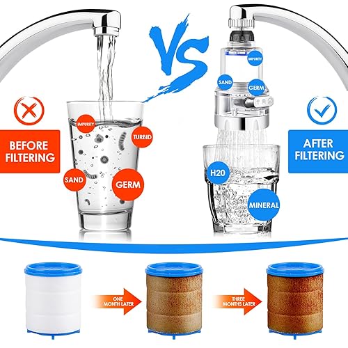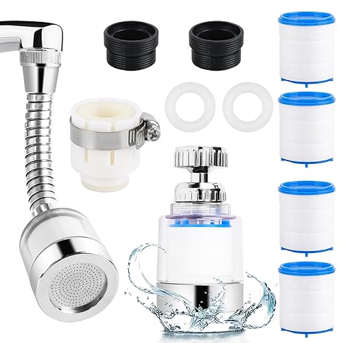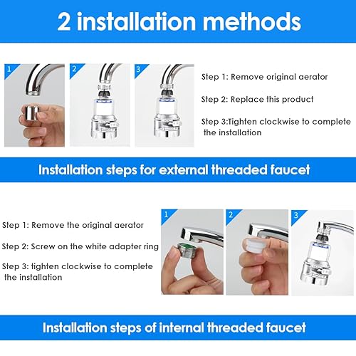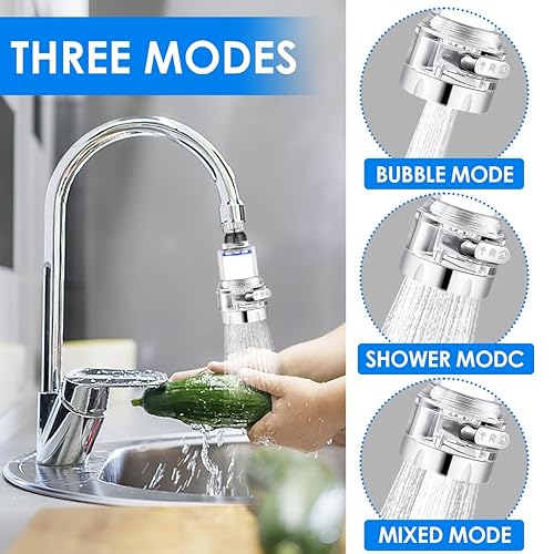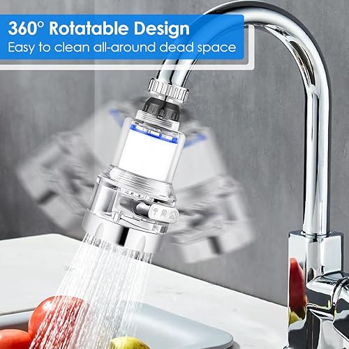MplehDa Wasserfilter für Wasserhahn, 2 Stück Wasserhahn Filter, 360° Tap Water Filter mit 3 Sprühfunktion, Wasserfilter mit 6 PP-Baumwollelementen, Wasserhahn Entkalker Aufsatz für Küche Badezimmer