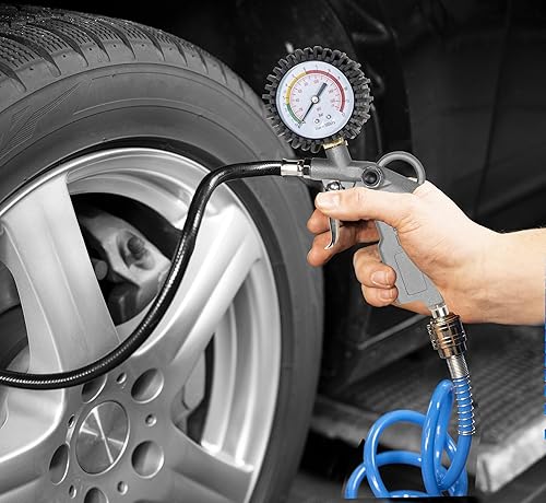 Güde Druckluft-Set 3-tlg. Metall (3-teilig: Reifenfüller, Spiralschlauch 5 m, Ausblaspistole (jeweils mit Stecknippel) für Kompressoren bis max. 10 bar)