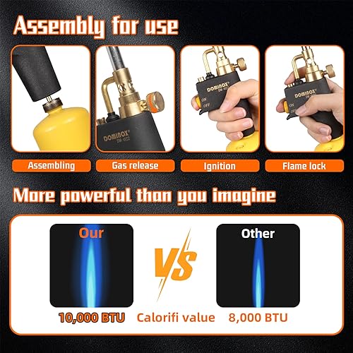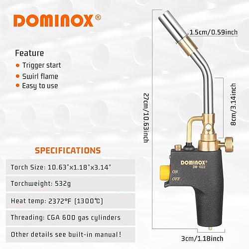 DOMINOX Propangasbrenner-Kopf, Taschenlampenkopf für Propan, Löten, Zündung, Grill, Beleuchtung