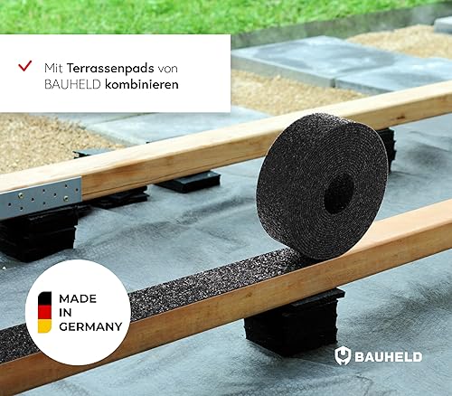 BAUHELD® Terrassenpads auf Rolle 20000x60x 3mm [Made in Germany] Stabile Bautenschutz-Matte aus Gummi-Granulat - Als Unterleg-Platten für Terrassen-Fliesen, WPC Terrassen-Dielen, Stelzlager, Balkon
