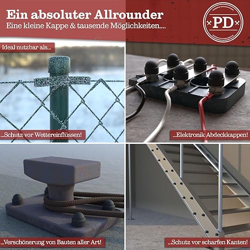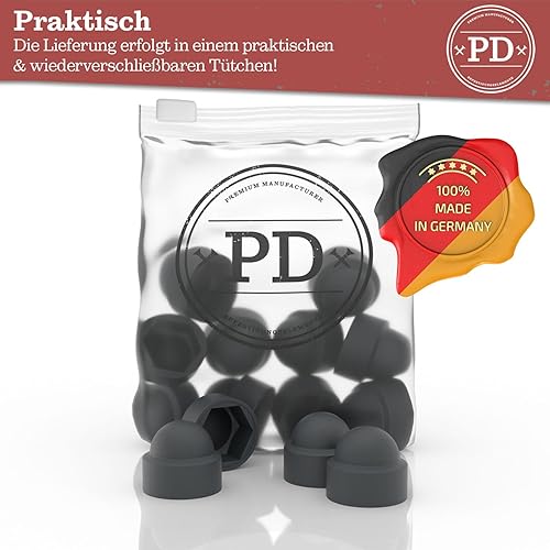 PD® Sechskant Schutzkappen M10 (Schlüsselweite 17) | Abdeckkappen für Schrauben Anthrazit aus Kunststoff | Langlebige Abdeckkappen für Muttern & Schraubenkopf | Schraubenabdeckung Anthrazit | 50 Stück