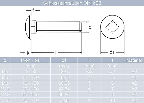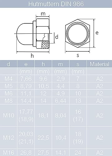 Schlossschrauben M8x45/45 mm mit selbstsichernden Hutmuttern & Unterlegscheiben M8 aus Edelstahl A2 (20 Stück) | Flachrundschrauben - Stoppmuttern - Beilagscheiben von MESAROS®