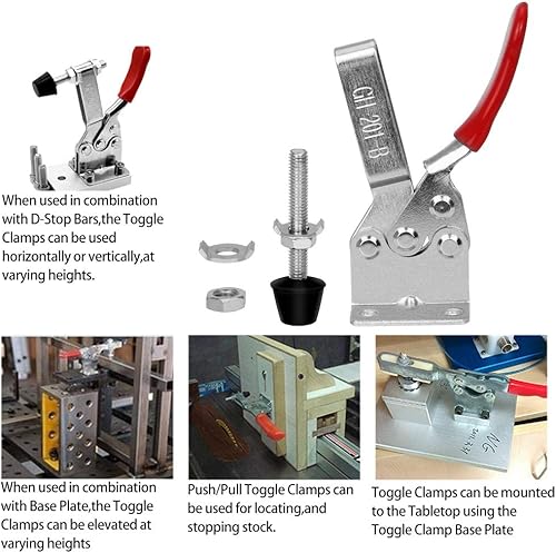 Favengo 4 Stück Kniehebelspanner Schnellspanner GH-201B 90Kg/198Lbs Fassungsvermögen Horizontal Toggle Clamp Haltekraft Waagrechtspanner Anti-Rutsch Knebelklemme Handwerkzeuge für Schweißen