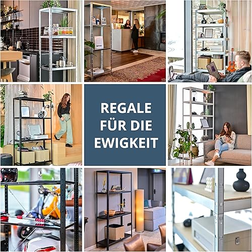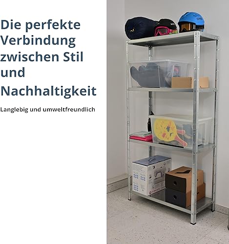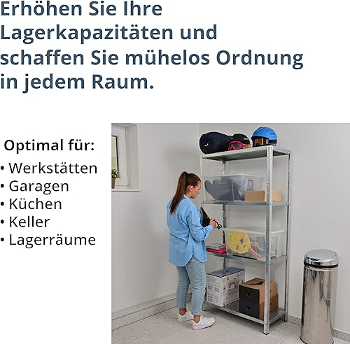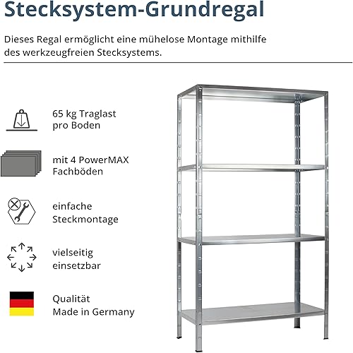 SCHULTE Regalwelt Steckregal mit 4 PowerMAX Fachböden, 65 kg Tragkraft, 190x100x40 cm (HxBxT), verzinkt (Lagerregal, Werkstattregal, Kellerregal, Garagenregal, Metallregal