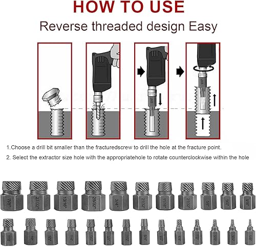 SOLLON 25-teiliges Schraubenausdreher Set Profi Linksausdreher Set Screw Extractor mit Tragetasche zum Entfernen von Gebrochenen Bolzen Schrauben (transparente Farbe)