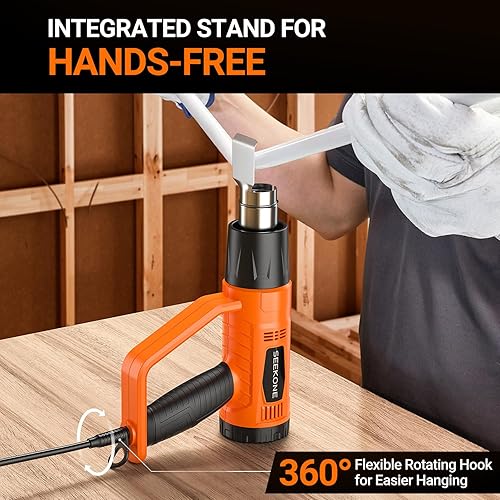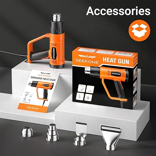 SEEKONE Heissluftpistole, 2000W Heißluftfön (400℃/600℃) Hochleistungs mit 2 Temperatureinstellungen, Rutschfestem Griff, Flammhemmender Schutzhülle, 4 Düsen zum Entfernen von Farbe, Lötrohren