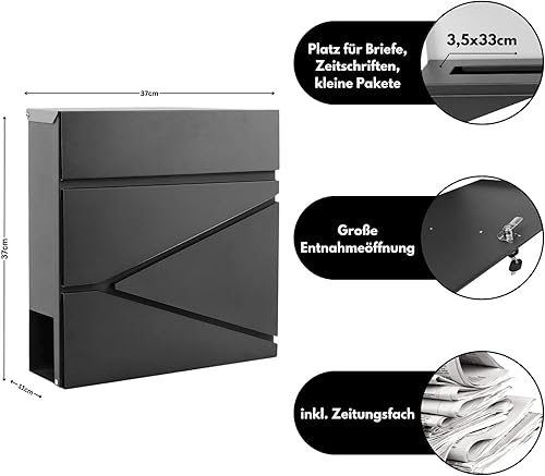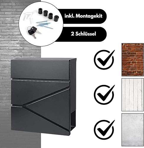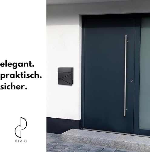 DIVID® Briefkasten (MD 021 B)/(DIV-304) in Modernem Design | Wandmontage inkl Schrauben und Dübel | Wandbriefkasten inkl. 2 Schlüssel | Moderner Briefkasten zum abschließen |
