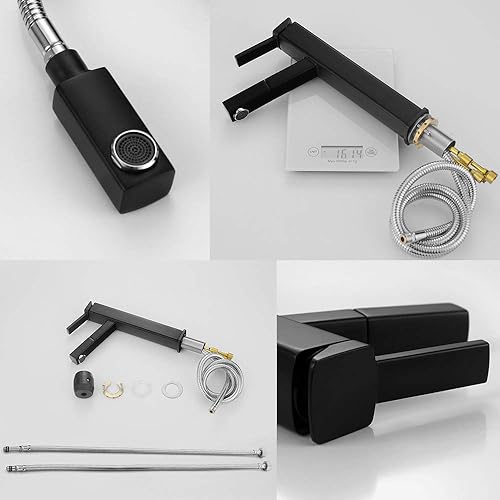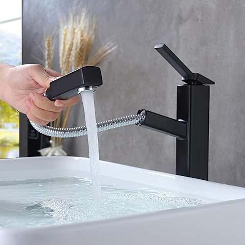 KAIYING Waschtischarmatur mit Herausziehbarer Spritze, Mischbatterie Waschbecken für Heißes und Kaltes Wasser, Ausziehbarer Wasserhahn Bad mit Drehbarem Auslauf (gebürstetes Nickel)