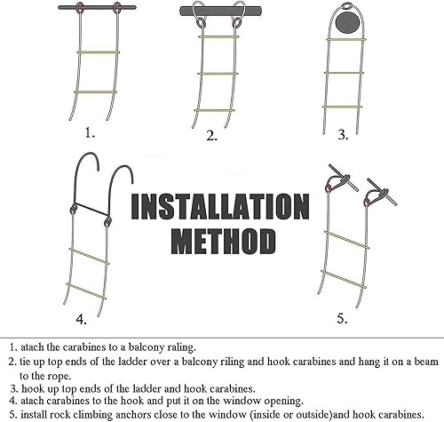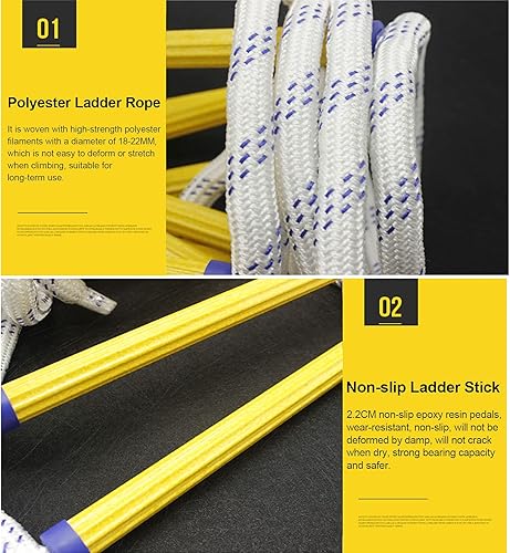 PHONME 3m 5m 8m 10m 15m 20m Strickleiter Feuerleiter Fluchtleiter Rettungsleiter Notleiter Mehrzweckleiter Feuerleiter Tragfähigkeit bis zu 420 kg mit Haken Für Feuerleitern Und Balk(Size:15m)