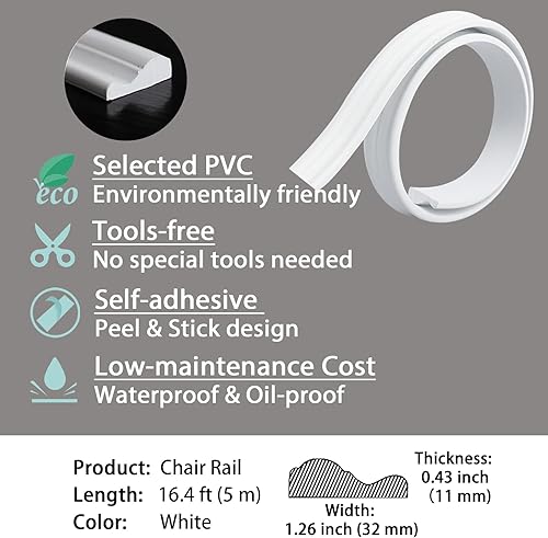 Wandleistenleiste & Stuhlschiene | Abziehen und aufkleben, selbstklebende Verkleidungsleiste | DIY Home Decor auf dem Spiegelrahmen der Schranktür, 5 m x 32 mm Weiß