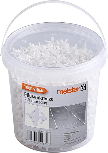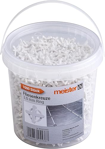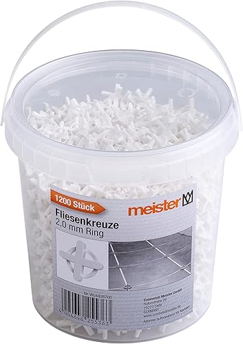 Meister Fliesenkreuze 2,0 mm - Praktisches Set mit 1200 Stück - Wiederverwendbar durch Ring - Aus robustem Polypropylen - weiß / Fliesenzubehör / Fliesenverlegehilfe / Fugenkreuze / 4426700