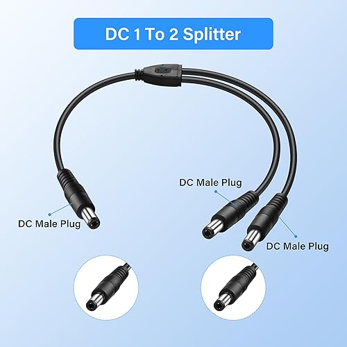 PNGKNYOCN 30cm DC 5.5x2.5mm 1 Stecker auf 2 Stecker Stromversorgungs-Splitterkabel, Y-Splitter-Adapterkabel für CCTV-Kameras DVR, LED-Lichtstreifen (2-Pack)