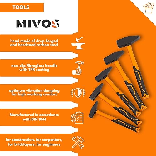 Mivos Latthammer 600 g Kopfgewicht 2K Fiberglasstiel - Zimmermannhammer mit Magnetischem Nagelhalter - Klauenhammer mit Fiberglas Anti-Vibration Griff und Geschmiedet Kopf - DIN 7239