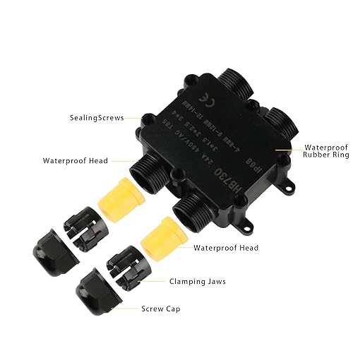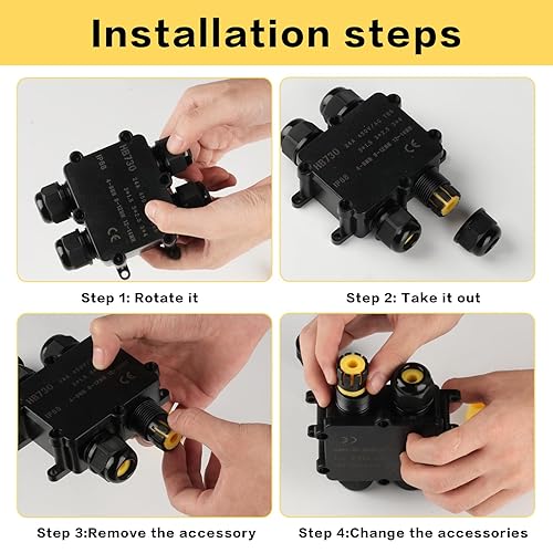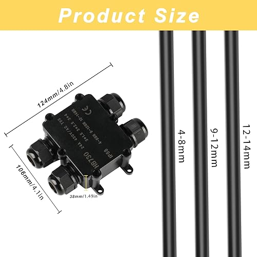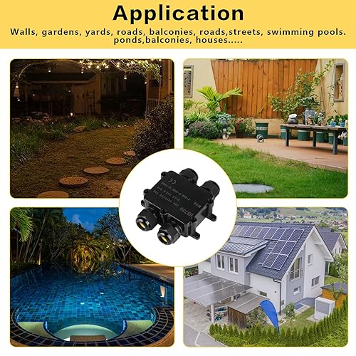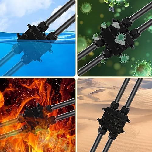 Abzweigdose Wasserdichte IP68, Verteilerdose Außen Wasserdicht, 4 Wege Verbindungsdose, Kabelverbinder Erdkabel Verbinder Aussen Schwarz, Elektrischer Kabelbox für Kabel Ø 4mm -14mm