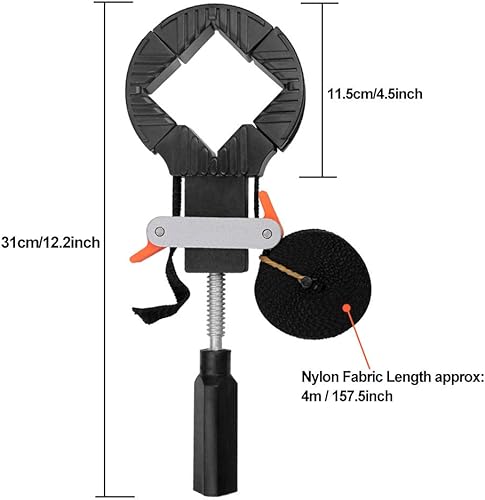 CODIRATO Rahmenspanner Bandspanner mit 4 Backen, Aluminium Winkelspanner mit 4m Nylongurt Eckenspanner Ecke Klemme Bandzwinge für Bilderrahmen, Schublade