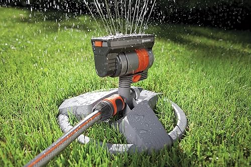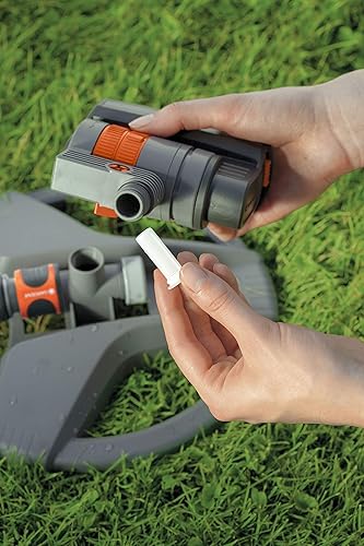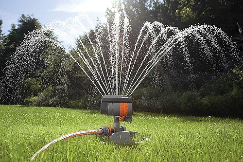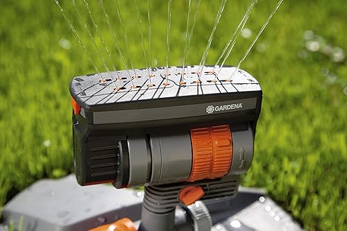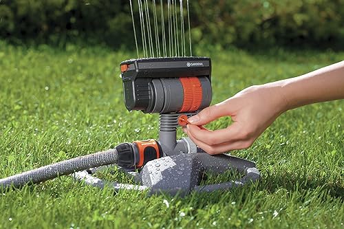 Gardena Viereckregner ZoomMaxx-Aktion: Variabler Sprinkler für unterschiedlichste Anforderungen und Flächen von 9 - 216 m², Reichweite 3 - 18 m, Sprengweite 3 - 12 m, mit Standfuß (8128-20), Modern