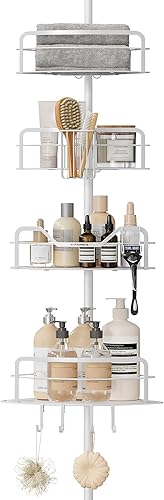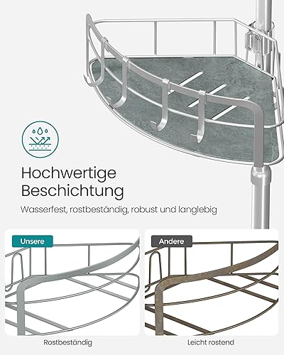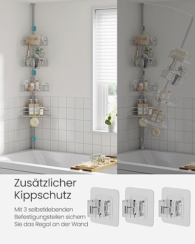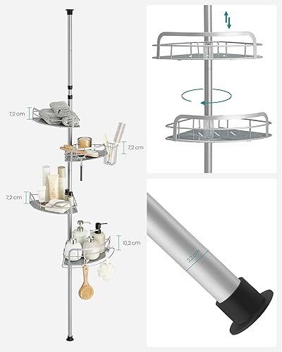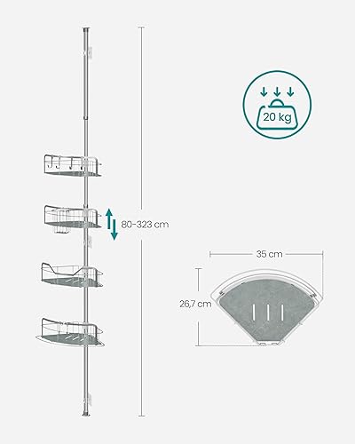 SONGMICS Duschregal, Badregal, Duschablage ohne Bohren, Gesamthöhe 80-323 cm, mit 4 Ebenen, Regal höhenverstellbar, für Badezimmer, Taubengrau BCB003E01