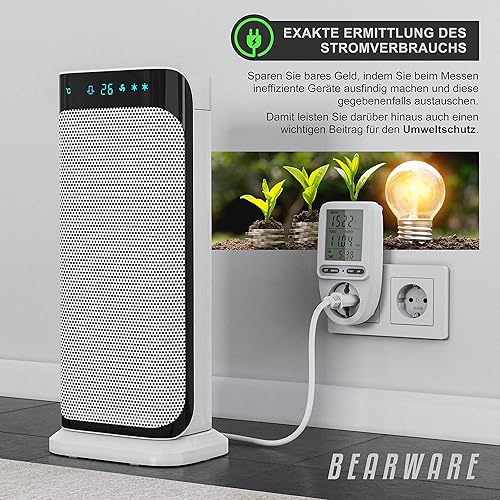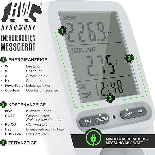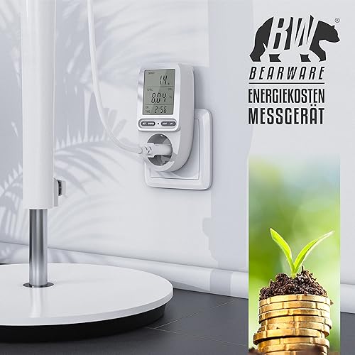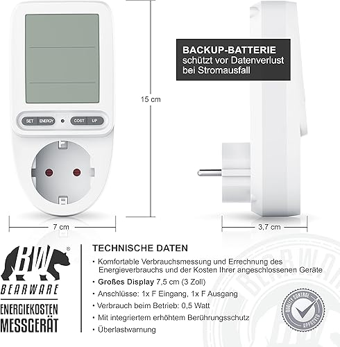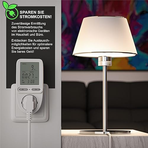 CSL – Energiekostenmessgerät Stromkostenmessgerät Stromverbrauchszähler – 3 Zoll großes Display – max. 3680 Watt – 4 Tasten – inkl. Backup-Batterie - Strommesser/Stromzähler für Steckdose