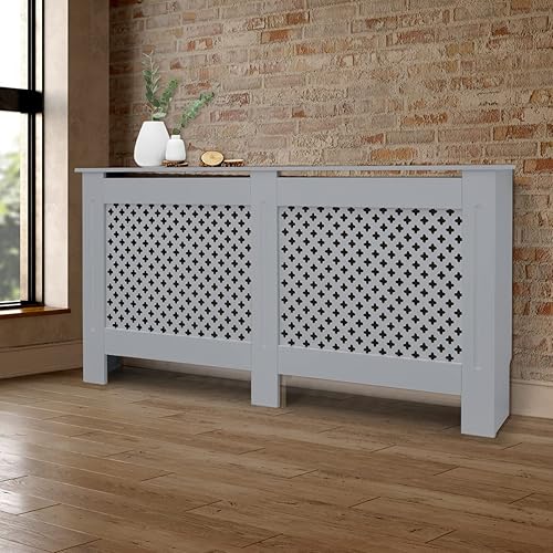ECD Germany Heizkörperverkleidung mit Wabenmuster 112x19x82 cm Weiß aus MDF lackiert für Schlafzimmer Wohnzimmer Heizungsverkleidung Heizkörperabdeckung Heizungsabdeckung Heizung Heizkörper Abdeckung