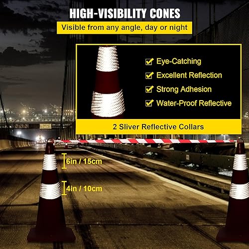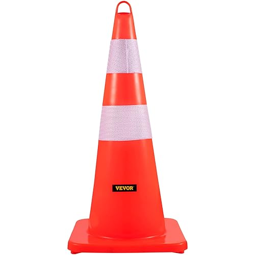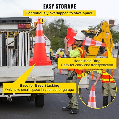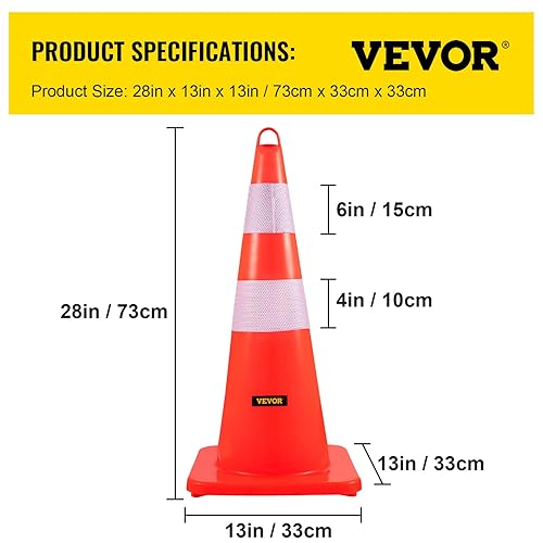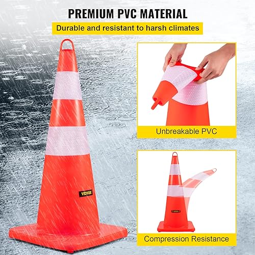 VEVOR Sicherheitskegel, 10 Stück 28 Zoll Verkehrskegel, Orangefarbene PVC-Baukegel, 2 Reflektierende Kragen, Verkehrskegel mit Beschwerter Basis und Handring, für Verkehrskontrolle