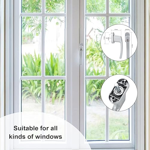 Jopassy Aluminium Fenstergriff mit Schloss in Stiftlänge 35cm Abschließbare Fenstergriffe,Kindersicherung Abschließbar Fensterschloss für alle gängigen Fenster und Balkontüren-8 Stück(Weiß)