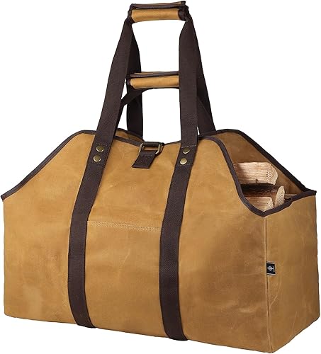 BONTHEE Extra Großer Kaminholzträger Holzkorb Brennholztasche Tragetasche aus Segeltuch mit 2 Griffe 1_braun