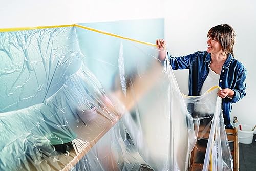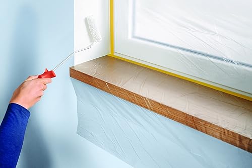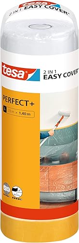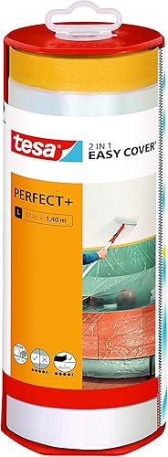 tesa Easy Cover Perfect+ Dispenser XL - 2in1 Malerfolie mit Washi-Kreppband und Abroller - für saubere, präzise Schnitte - mit Klingenabdeckung - 17 m x 2,60 m
