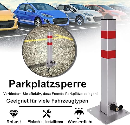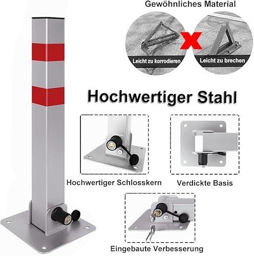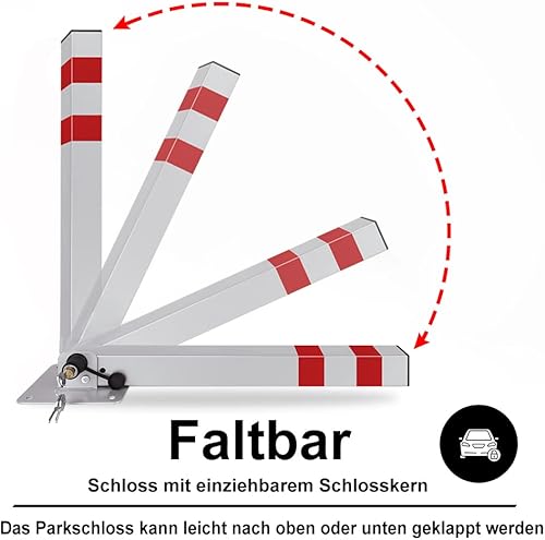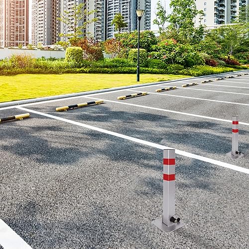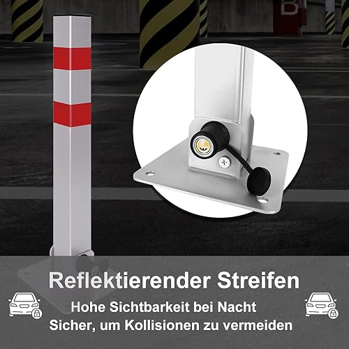 JOIEYOU Parkplatzsperre Absperrpfosten, Parkpfosten Klappbar, Parkplatzsperren mit 6 Schlüssel und Reflexstreifen, 600mm, 2 Stück