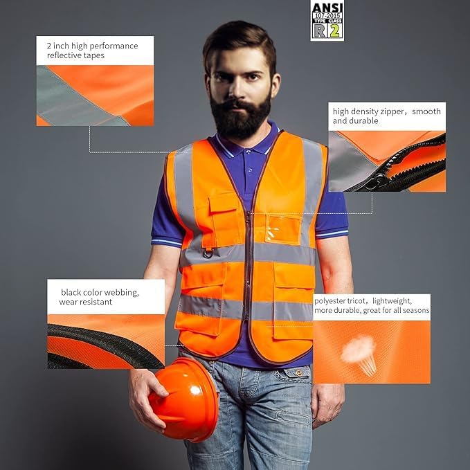 WLHGH Hochsichtbares reflektierendes Sicherheitsweste für Männer und Frauen - mit Taschen, Reißverschluss und reflektierenden Streifen - Bleiben Sie sicher und sichtbar…