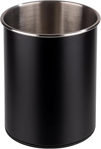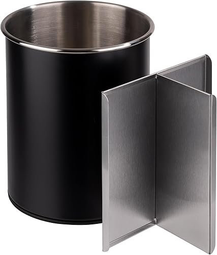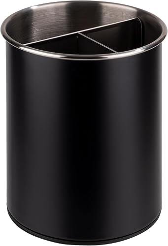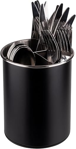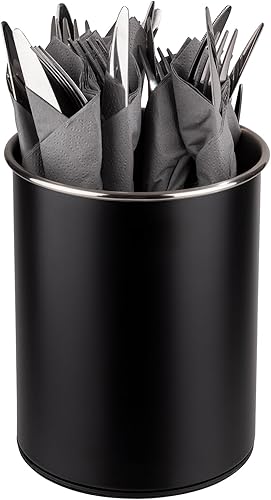 APS 11748 Besteckbehälter, drehbar, Ø 13 cm, Höhe 16,5 cm, möbelschonende Unterseite, herausnehmbarer Einteiler (3 Fächer), Edelstahl, schwarz