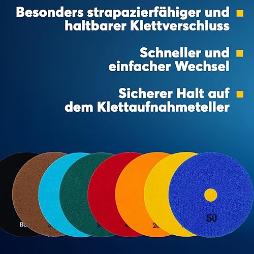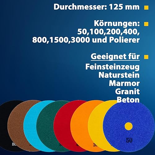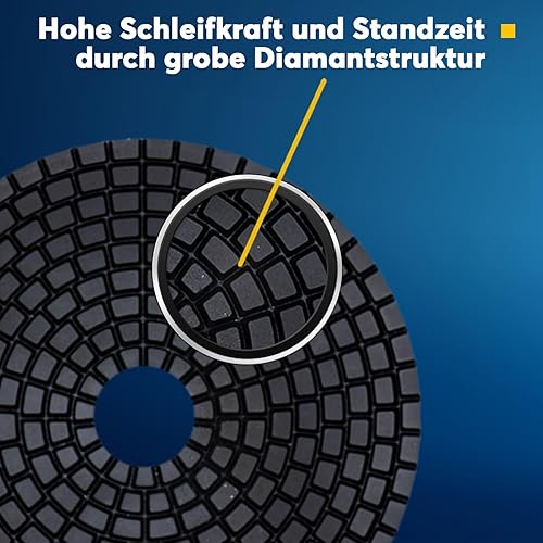 Profi Diamant-Schleifpad Nass 125 mm Körnung 50 Klettaufnahme für Naturstein Fliesen Granit Marmor Glas