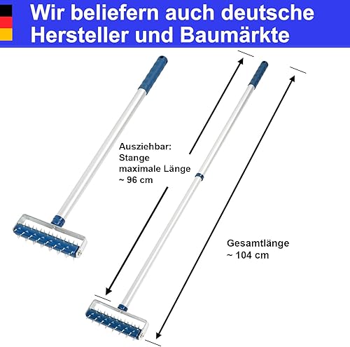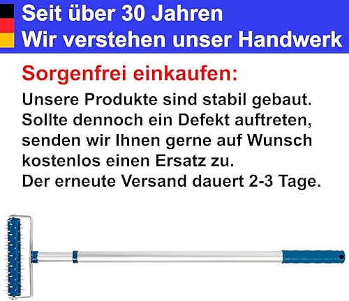 Tapeten Stachelwalze 150 x 500 mm mit Teleskopstiel Nagelroller Igelwalze Tapetenigel Tapetenschaber Tapeten entferner tapetenlöser Perforieren Tapeten Stachelroller entlüftungswalze