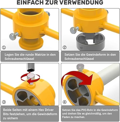 Glomora Schneideisen-Set, Gewindeschneider, PVC Drahtmacherwerkzeuge, Gewindeschneider für 1/2 Zoll, 3/4 Zoll und 1 Zoll, Schneiddrahtbohrer für Autoreparatur und Industrie