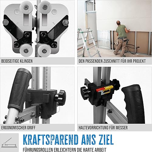 Güde Gipskarton-Plattenschneider GGKS (max. Schnittstärke: 12,5 mm, max. Schnitttiefe: 20-625 mm, Nettogewicht: 3,3 kg, inkl. 10 Ersatzmesser und 2 Standfüße als Halterung für Gipsplatten)