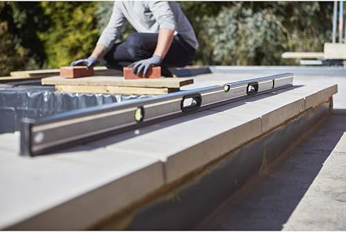 Stanley FatMax Wasserwaage Pro (180 cm Länge, horizontale/vertikale Libelle, Schutzkappen, Bi-Material Handgriff) 0-43-672