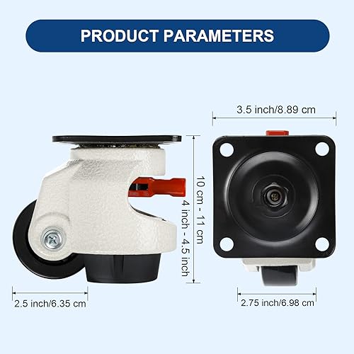 W B D WEIBIDA Schwerlastrollen mit Verstellbarem Ratschengriff, Heberollen Gesamtkapazität 1000kg, 360Grad-Möbelrollen Schwerlast, Versenkbare Nivellierrollen Groß für Möbel, Werkbänke,4er-Set,Schwarz