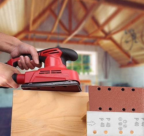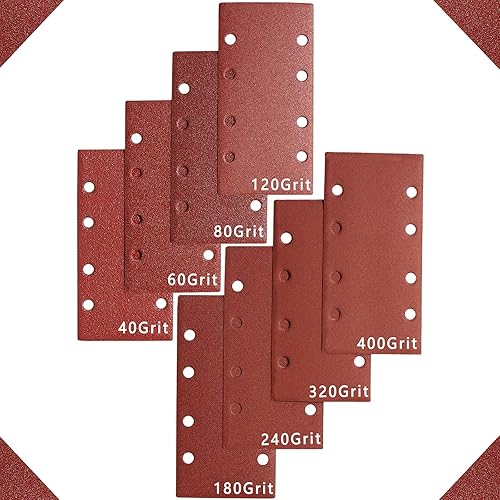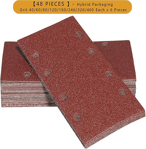 STEBRUAM 48tlg Schleifblatt Set 93 x 185 mm Körnung 40/60/80/120/180/240/320/400,8 Löcher verschiedene Zubehör Materialien für Schwingschleifer