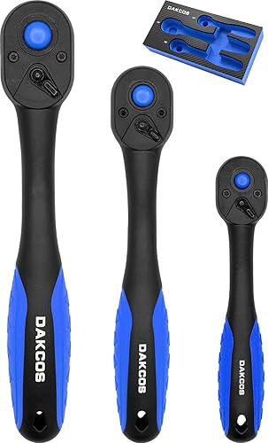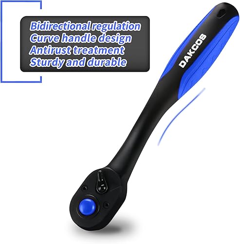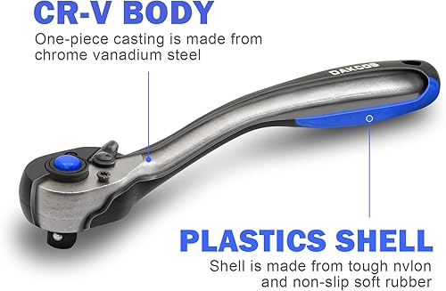 DAKCOS Umschaltknarre 1/4 Zoll mit 72 Zähnen feinverzahnte Ratsche aus CV-Stahl mit Zwei-Komponenten Griff