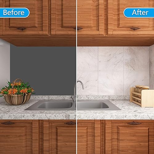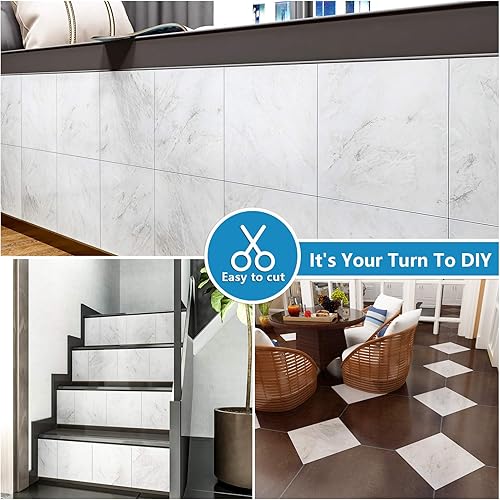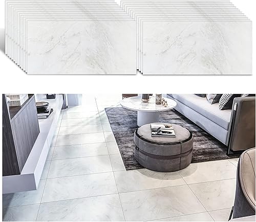 VEELIKE 60cm x 30cm Küche Vinyl Bodenaufkleber Fliese Selbstklebend 24 Stück Ölfest Wandfliesen Boden Wasserdicht für Wohnzimmer Badezimmer PVC Dekorativer Fliesenaufkleber Schälen und kleben