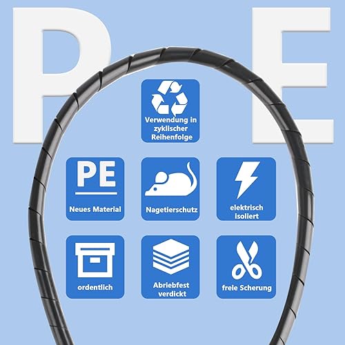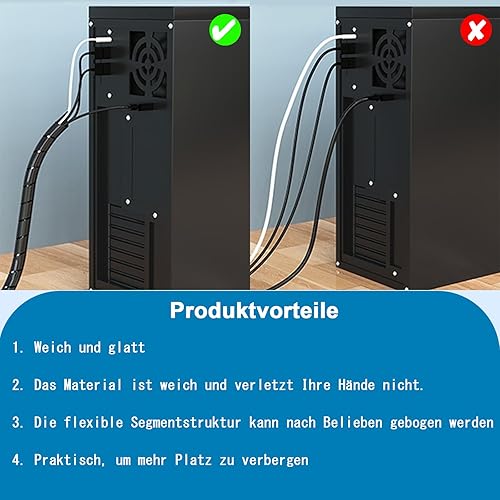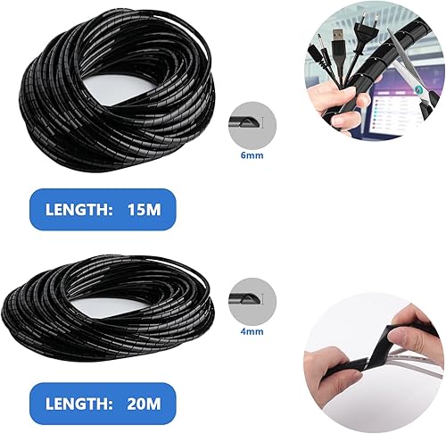 2 STK Spiral Kabelschlauch Schwarz,35 Meter Universal Kabel Spiralschlauch, Kabelschutzschlauch Kabelmanagement, Kabelkanal für TV Computer PC Kabelführung Kabel Organizer 4mm x 20m/6mm x 15m