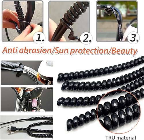 XPOOP 2 Stücke 90cm Scooter Kabelschutz Spiral Kabelschlauch Kabelschlauch Kabelspirale Kabelschutzschlauch Flexibler Spiralschlauch Kabelorganisation E-Scooter Zubehör Schwarz