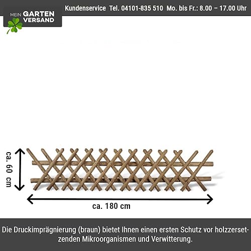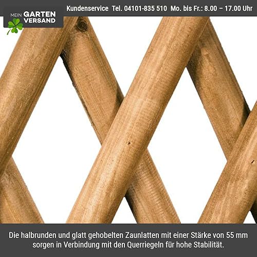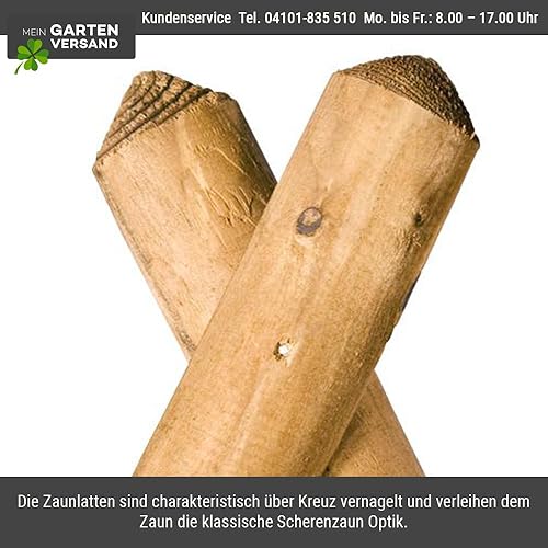 10er Set Jägerzaun Gartenzaun Set | Zaunfelder im Maß 250x120 cm (Breite x Höhe) + 20 x Querriegel 7x250 cm | aus braun druckimprägniertem Kiefer/Fichte Holz | Scherenzaun | Vorgarten-Zaun | Holz-Zaun