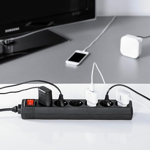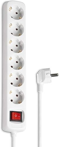 Hama Steckdosenleiste 6-Fach (Mehrfachsteckdose mit 3m Kabel, inkl. Kippschalter, erhöhter Berührungsschutz, Steckplätze um 45 Grad gedreht, Steckerleiste GS geprüft, max. 3500 W) weiß