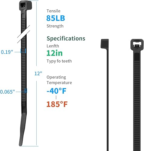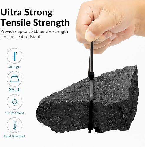 XINGO 200 Stück Kabelbinder Schwarz, 200mm x 4.8mm, 40 kg Zugfestigkeit, UV-beständig, Selbstsichernde Kabelbinder für drinnen und draußen
