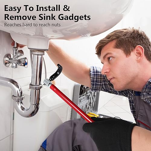 Nakutita Standhahnmutterschlüssel Set, 13 mm Standhahnschlüssel, Stahlqualität Armaturenzange Wasserhahn Montagewerkzeug 8-12mm, Waschbeckenarmatur-Werkzeug Spezialwerkzeug mit Handschuhen